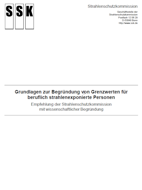 Die beigefügte Arbeitshilfe liefert eine Empfehlung der Strahlenschutzkommission zu Grenzwerten für beruflich strahlenexponierte Personen.[