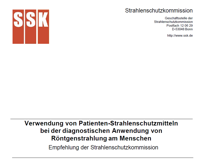 In den letzten Jahren wurde der Einsatz von Patientenstrahlenschutzmitteln bei der diagnostischen Anwendung von Röntgenstrahlung zunehmend in Frage gestellt. Bereits in ihrer Empfehlung aus dem Jahr 2018 hat die SSK den Verzicht auf Patientenstrahlenschutzmittel bei fast allen Projektionsaufnahmen empfohlen. Die Veröffentlichung zahlreicher internationaler Empfehlungen, bei der Anwendung diagnostischer Röntgenstrahlung weitestgehend auf den Einsatz von Patientenstrahlenschutzmitteln zu verzichten, veranlasste eine kritische Prüfung und anschließend eine Aktualisierung der Empfehlung aus dem Jahr 2018.[