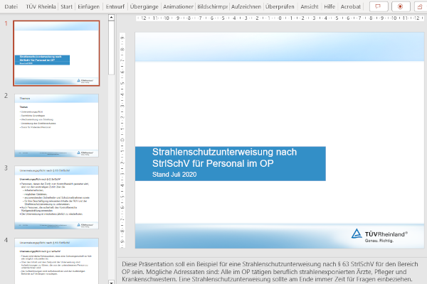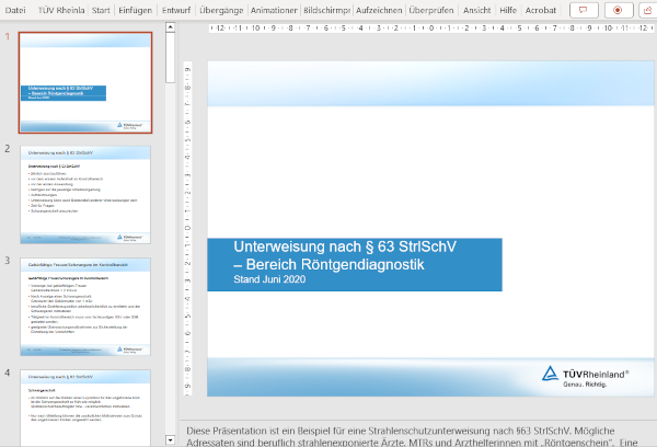 In der Strahlenschutzverordnung ist die Unterweisung gegenüber der Röntgenverordnung und der Strahlenschutzverordnung von 2001 präziser beschrieben worden. Zusätzlich sind die Inhalte der Unterweisung jetzt im Verordnungstext enthalten, um die zu vermittelnden Informationen zu präzisieren.