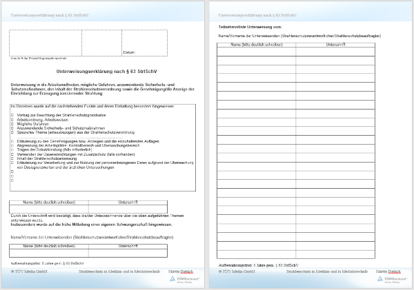 Eine Unterweisung muss vor der ersten Tätigkeit und vor Zutritt zum Kontrollbereich erfolgen und ist jährlich zu wiederholen. In diesem Beitrag wird beschrieben, wer unterwiesen werden muss, wann die Unterweisung zu erfolgen hat und welche Inhalte in der Unterweisung berücksichtigt werden müssen und sollen. Arbeitshilfen: von: |